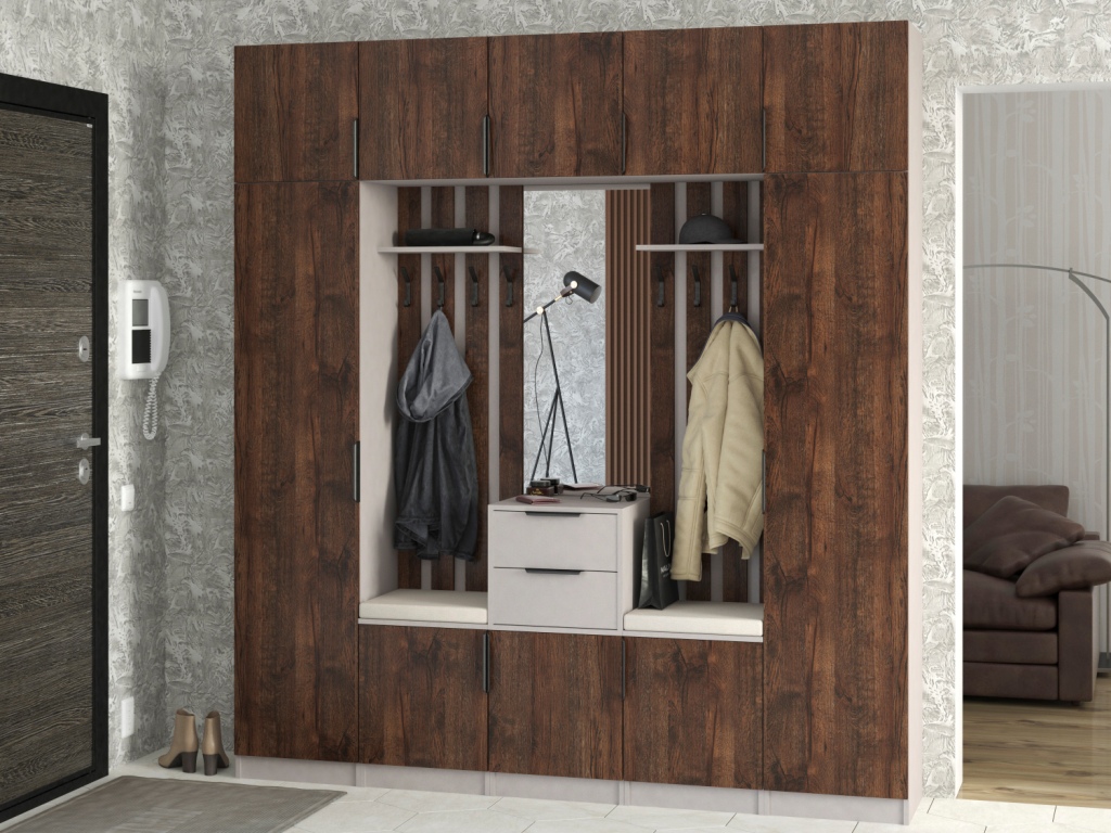 Во вкладке "Выбрать модули" Вы можете подобрать различные по комплектации шкафы, вешалки, угловой элемент. Модульная система поможет подобрать вам необходимые модули, с учетом размеров помещения, планировки.