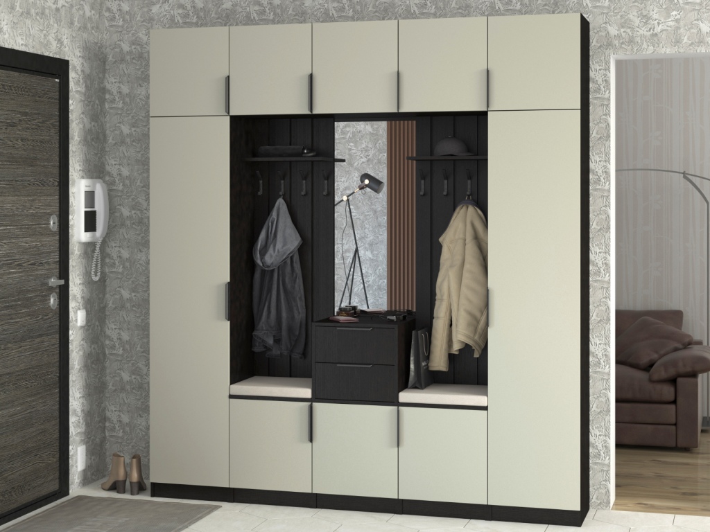 Во вкладке "Выбрать модули" Вы можете подобрать различные по комплектации шкафы, вешалки, угловой элемент. Модульная система поможет подобрать вам необходимые модули, с учетом размеров помещения, планировки.