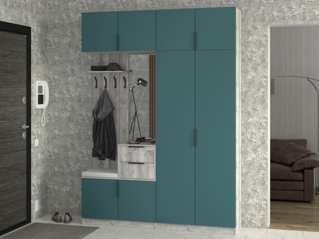 Во вкладке "Выбрать модули" Вы можете подобрать различные по комплектации шкафы, вешалки, угловой элемент. Модульная система поможет подобрать вам необходимые модули, с учетом размеров помещения, планировки.