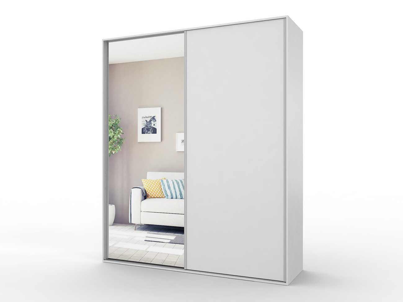 В базовую комплектацию шкафа входит кромка 0.4 мм, ручки торцевые, ламинированное ДСП 16 мм, ламинированное ДВП, направляющие Версаль, ходовые ролики РКМ-70, зеркало