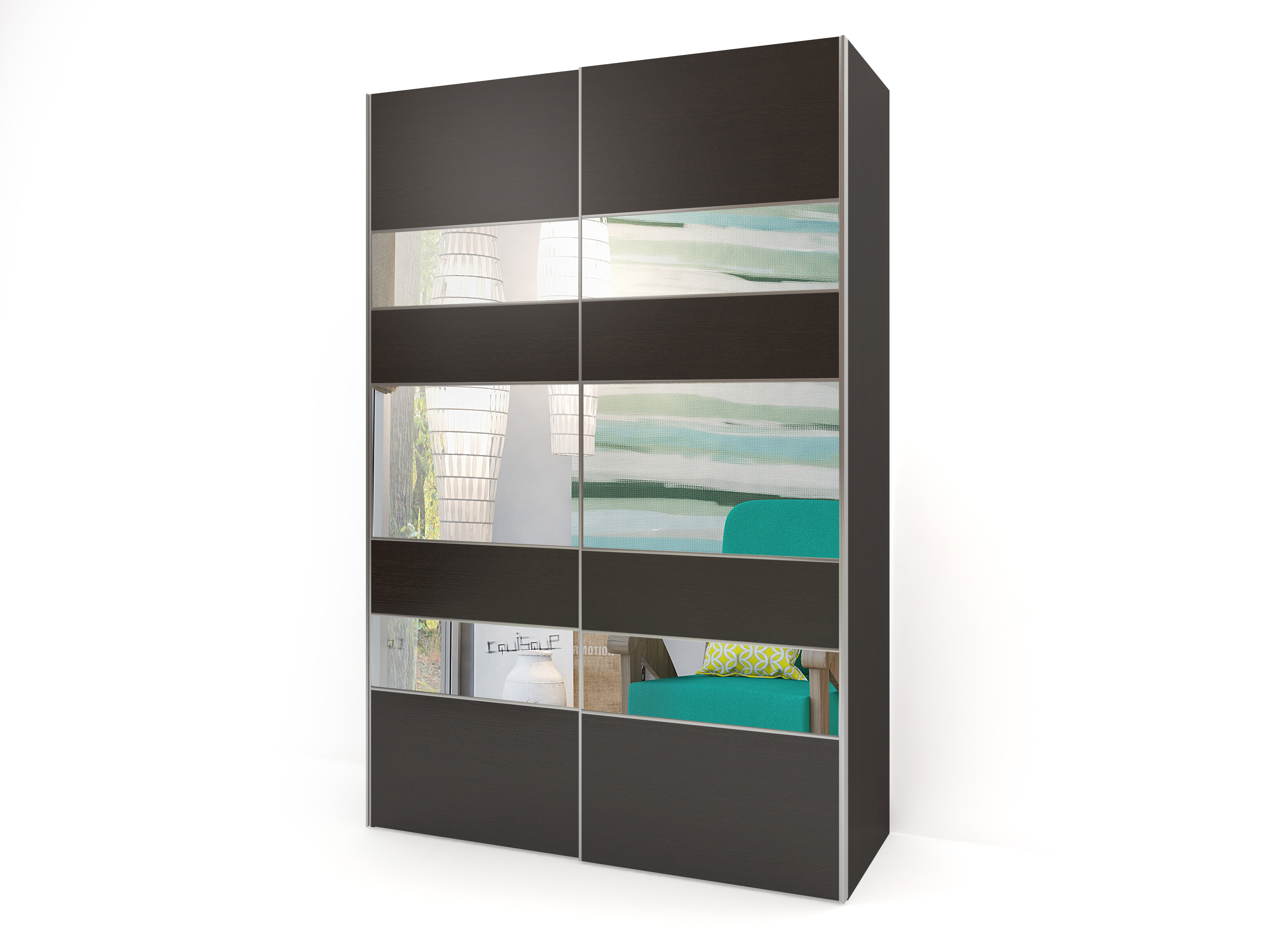 Используемый материал: корпус - ламинированное ДСП, ЛДВП, система направляющих "Реал" (один из видов верхнеподвесной системы премиум-класса с алюминиевыми профилями, отличающаяся бесшумностью и плавностью хода. Система создает впечатление «парящих» дверей, в связи с чем шкаф не выглядит тяжеловесным), профиль серебро, зеркало, кромка 0,4 мм