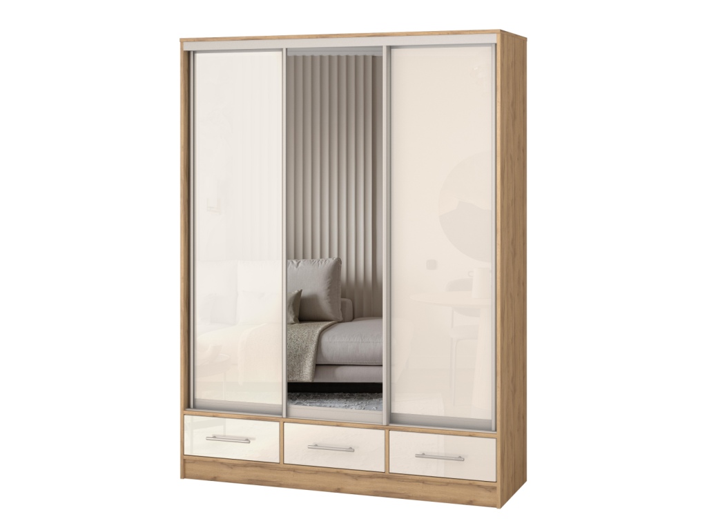 Шкаф купе 3-х дверный "Версаль" 3 ящика/МДФ/1 зеркало