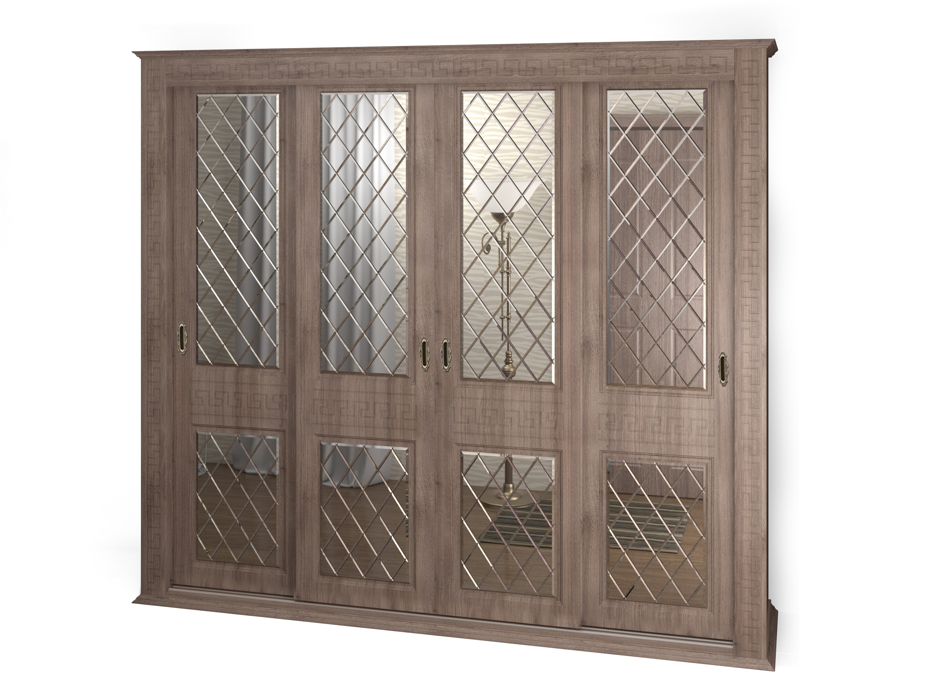Шкаф купе 4-х дверный "Греция", фасады зеркало гравировка