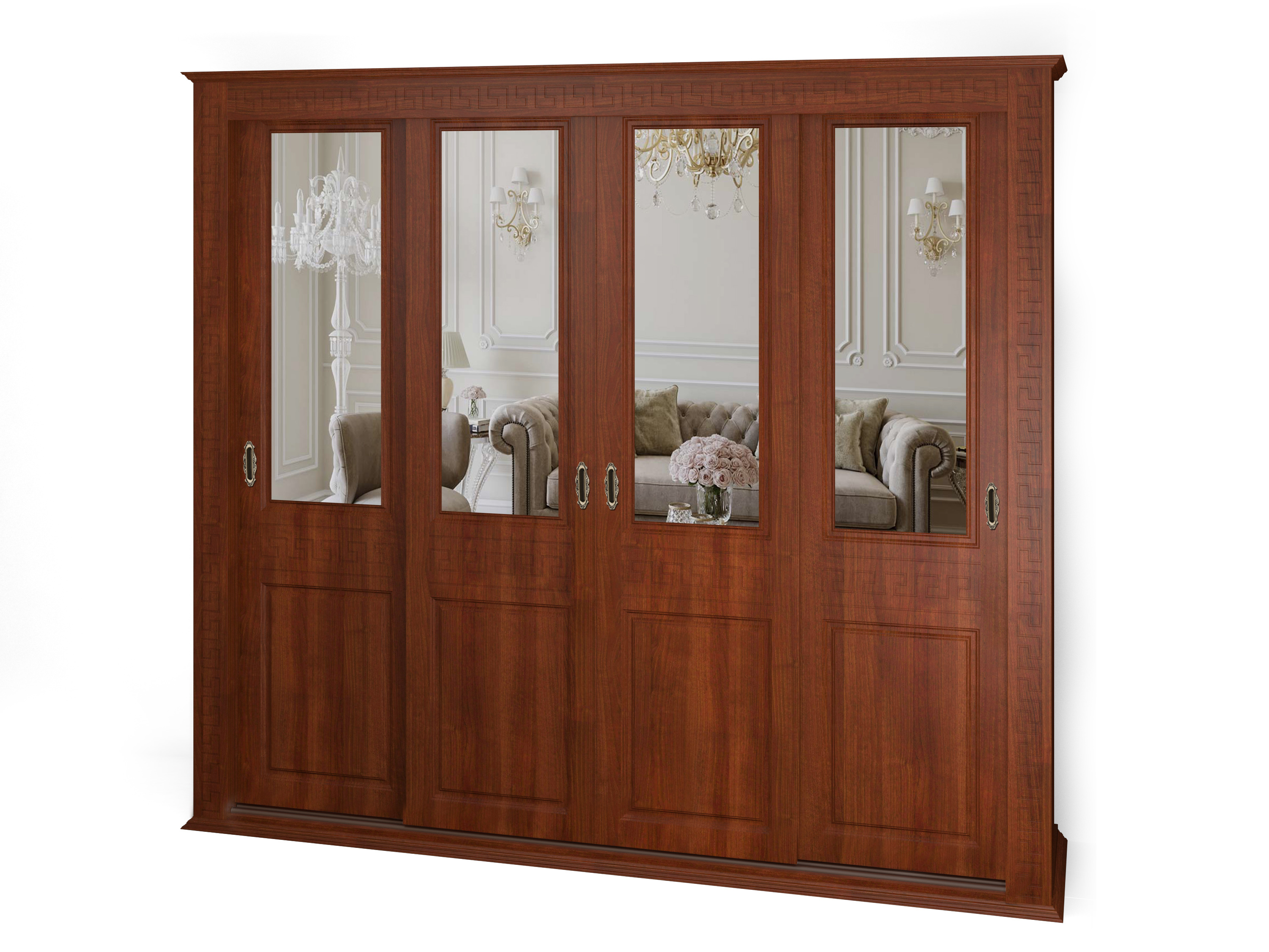 Шкаф купе 4-х дверный "Греция", глухие фасады + зеркало