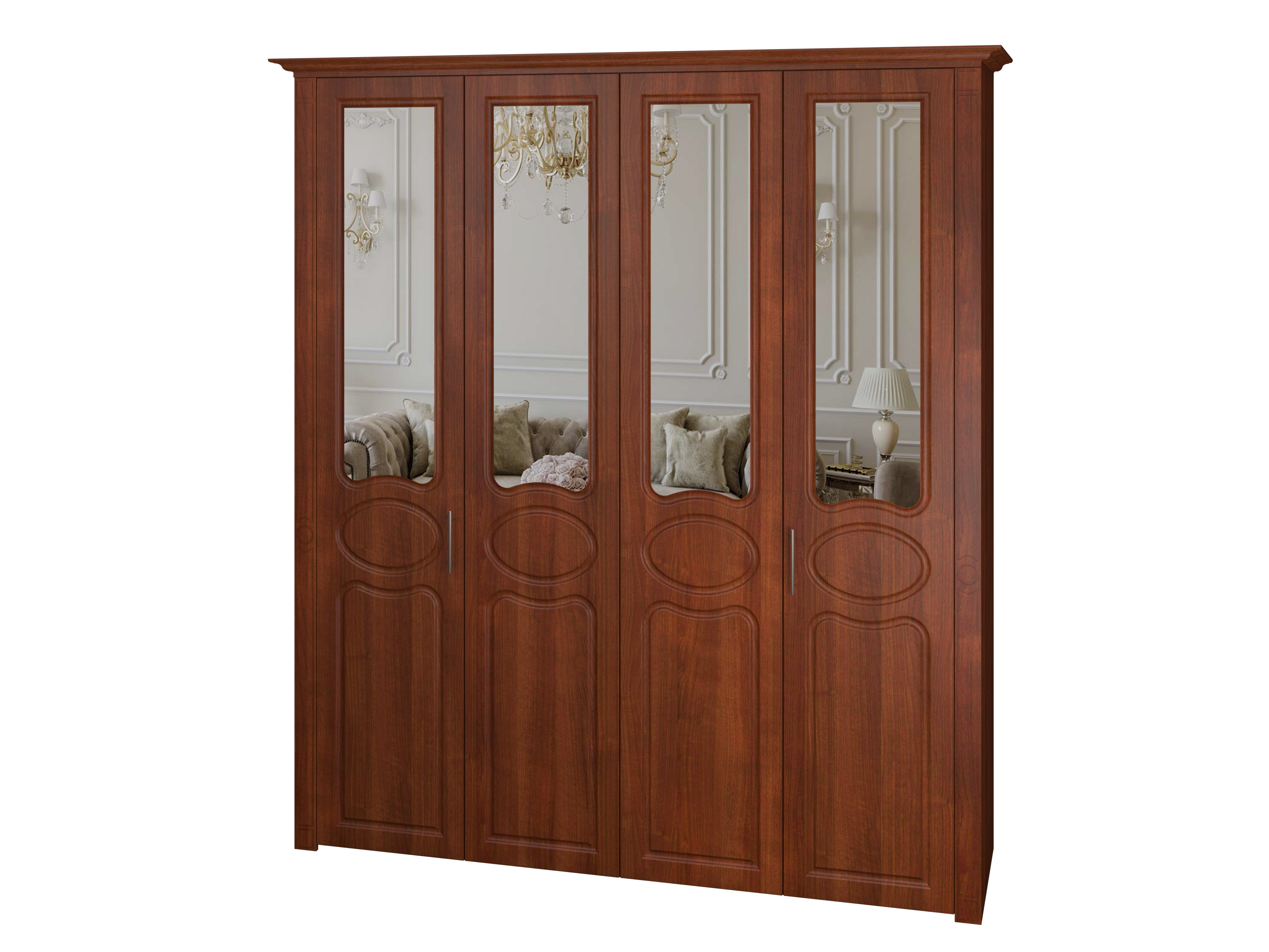 Шкаф 4-х дверный "Дегар Люкс" складные глухие фасады с зеркалом