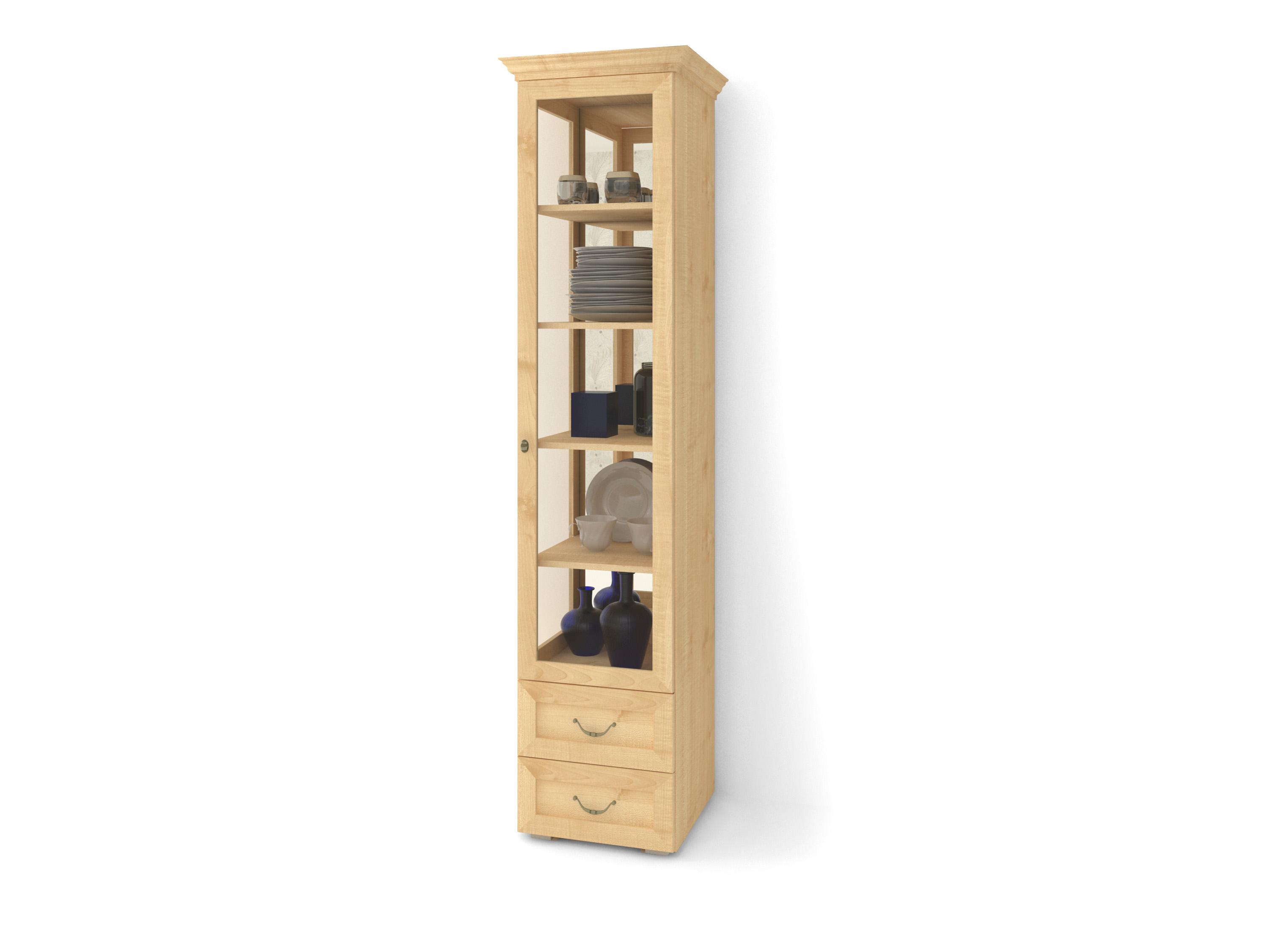 Шкаф пенал "Витраж-18" купить недорого в Нижнем НовгородеСтандартная комплектация: ламинированный ДСП, МДФ рамка, стекло, ламинированное ДВП, кромка 0,4 мм. Стандартная фурнитура: роликовые направляющие,петли без доводчика. Ручки бронза по фото. На задней стенке изделия установленнны ЗЕРКАЛА. Полки ЛДСП. Высота изделия указана с учётом карниза.