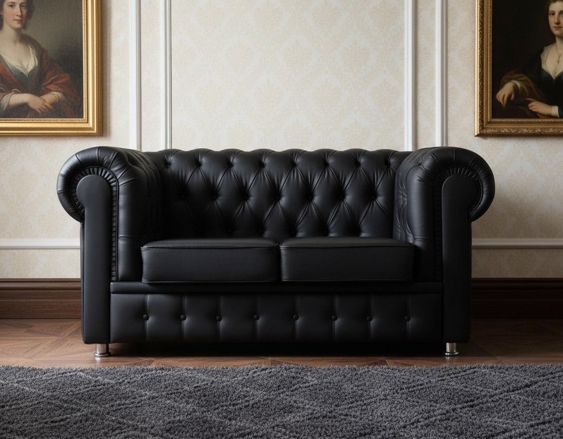 Диван "Честер" черный 2-х местный