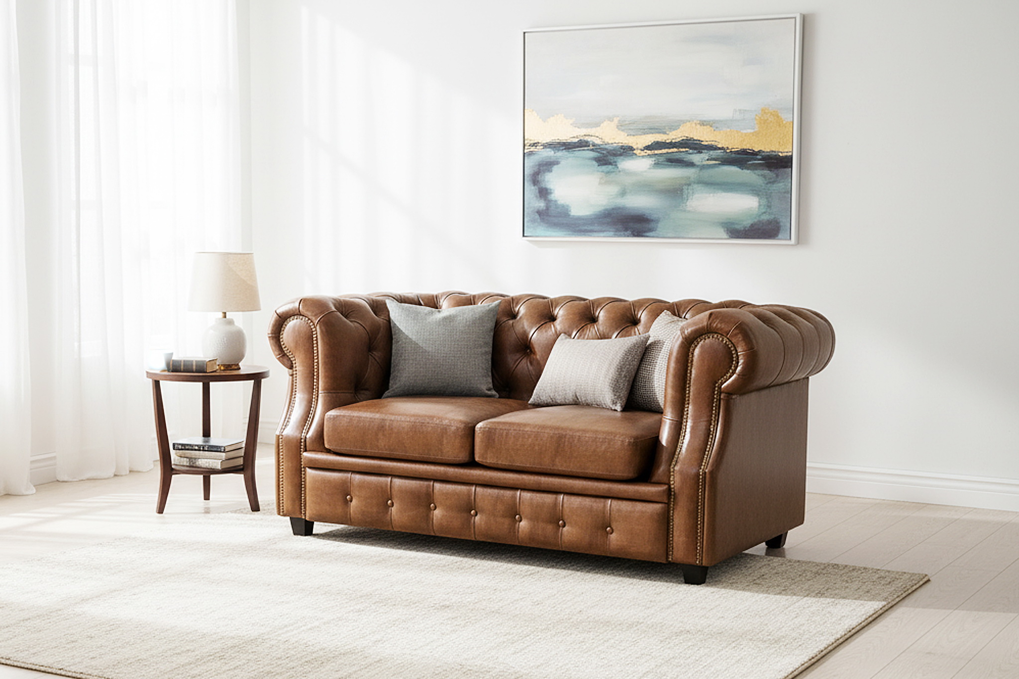 Диван "Честер Лофт" светло-коричневый 2-х местный