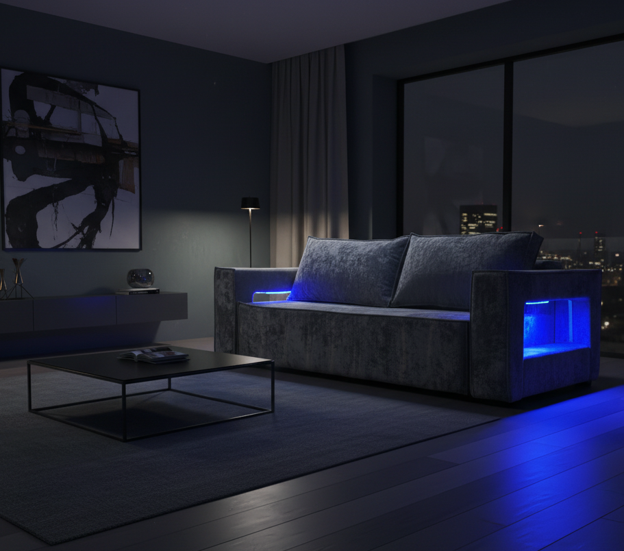 Диван еврокнижка "Лофт люкс плюш" серый с подсветкой