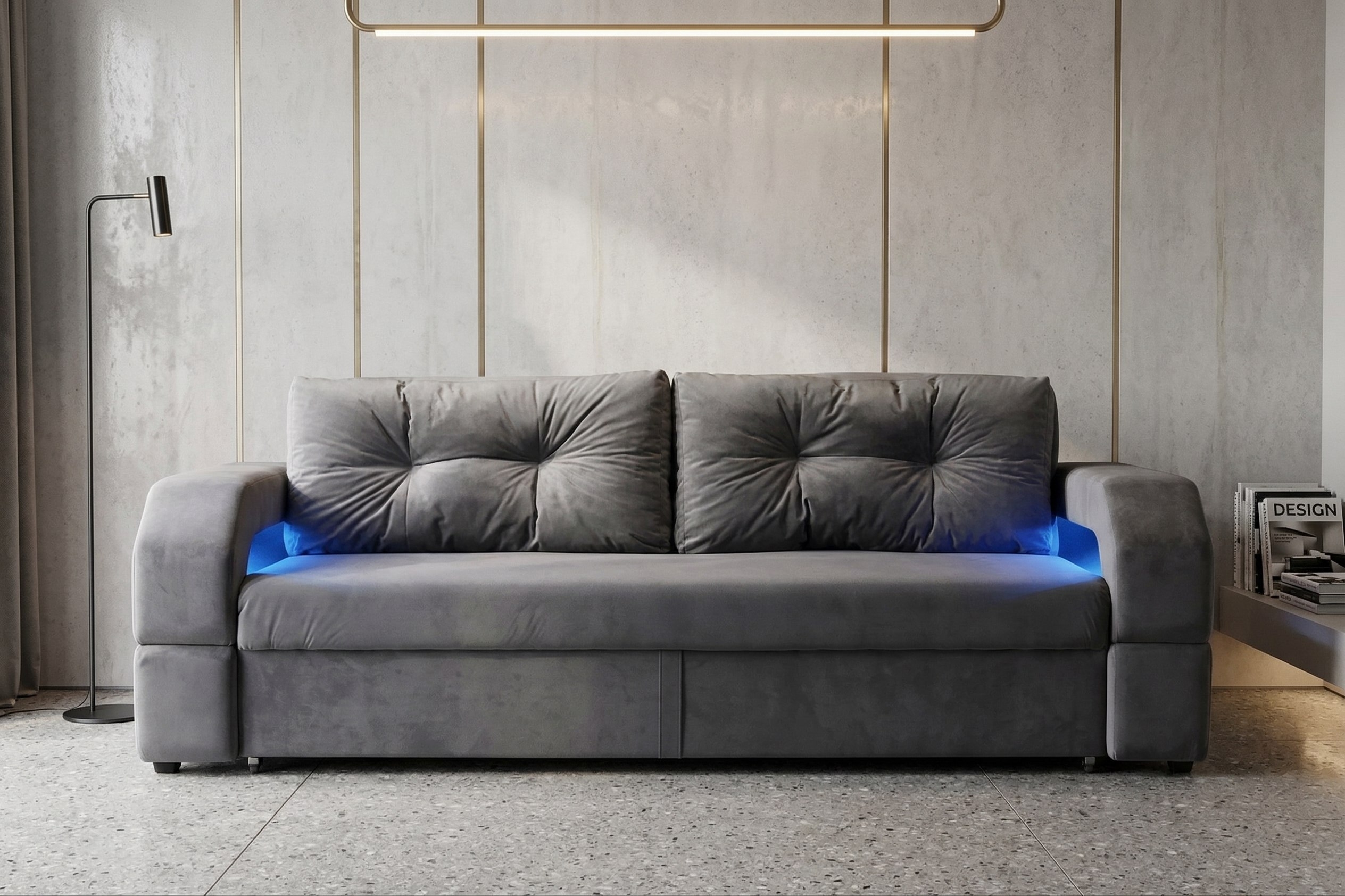Диван еврокнижка "Манчестер серый с подсветкой"