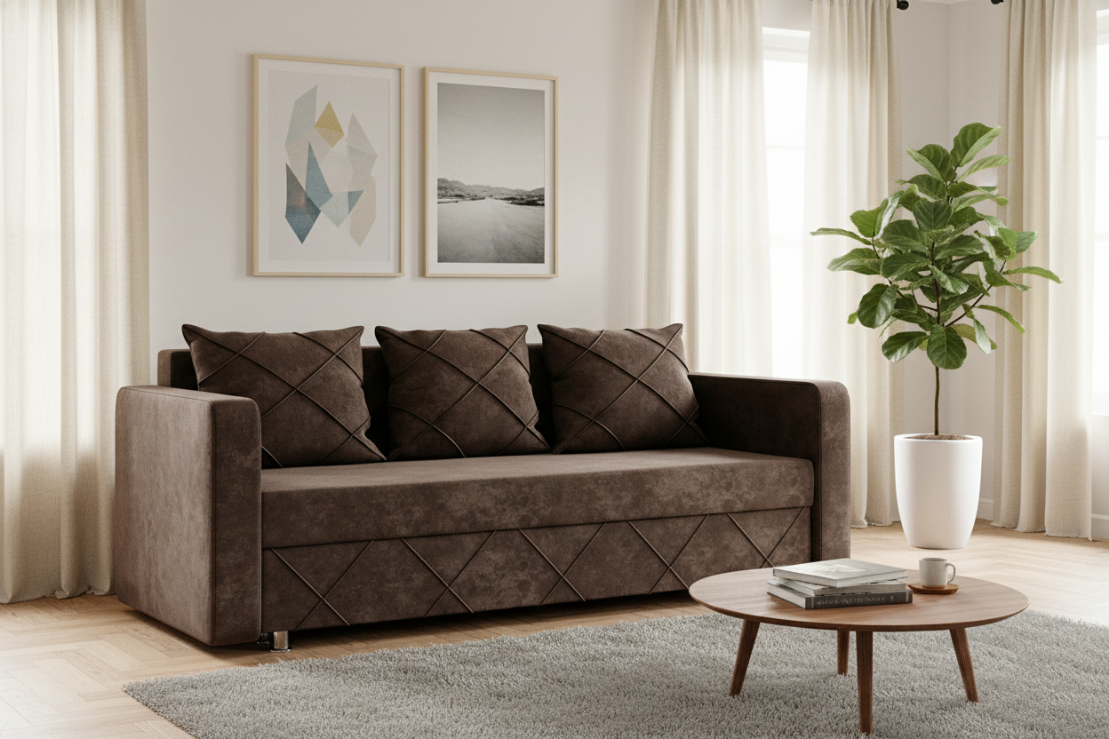 Диван еврокнижка "Стелла" коричневый купить недорого в Нижнем НовгородеСтоимость категорий ткани: