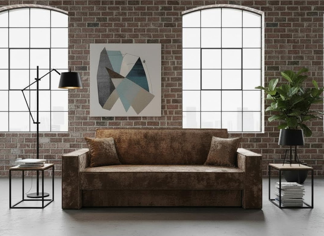 Диван книжка "Лофт с широкими подлокотниками" плюш коричневый