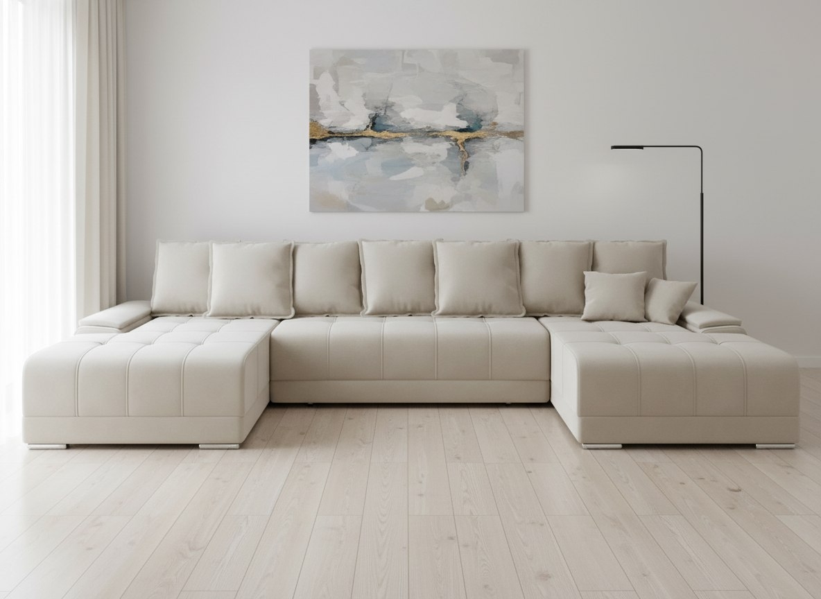 П-образный диван "Nordviks" (Нордвикс) велюр зара крем 02