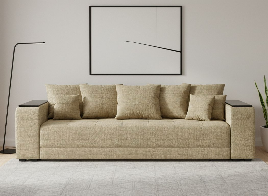 Прямой диван "Дубай" еврокнижка, рогожка дрим дарк беж купить недорого в Нижнем НовгородеСтоимость категорий ткани:
