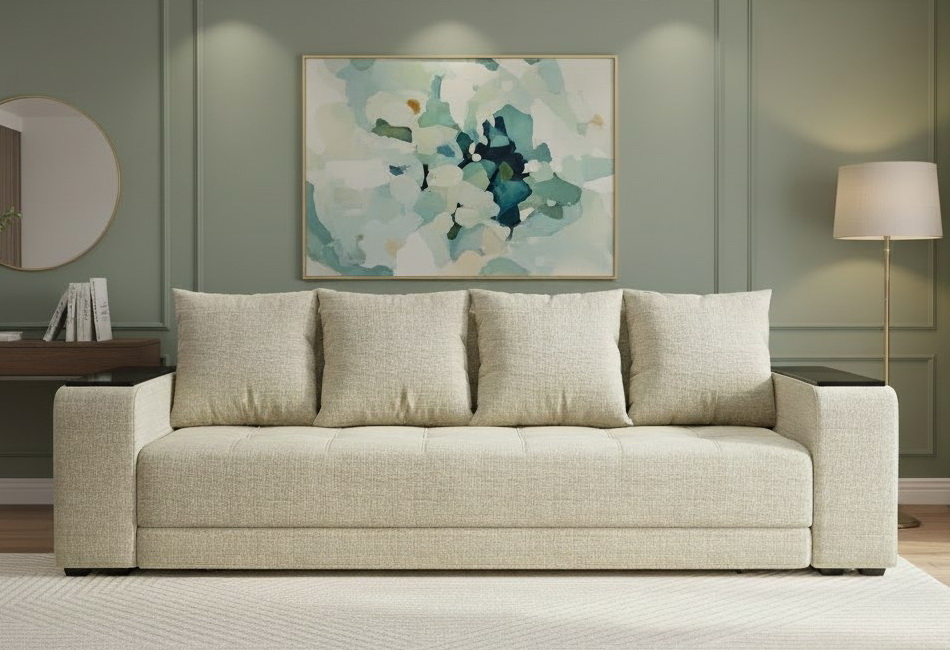 Прямой диван "Дубай Лайт" еврокнижка, рогожка дрим беж купить недорого в Нижнем НовгородеСтоимость категорий ткани: