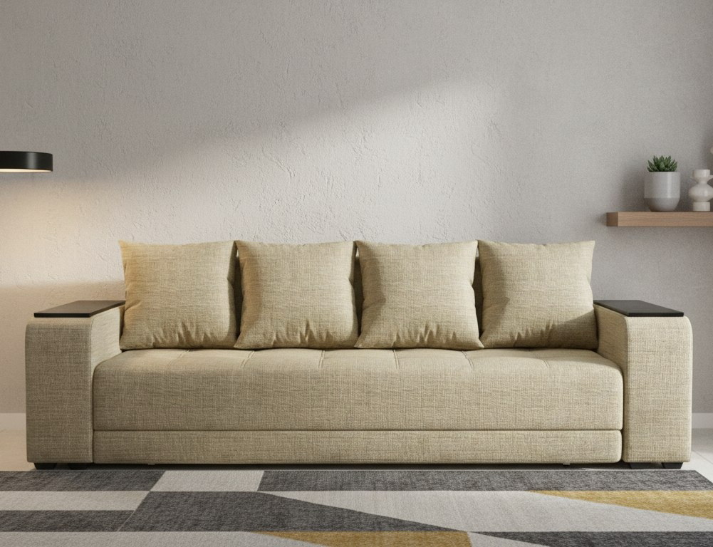 Прямой диван "Дубай Лайт" еврокнижка, рогожка дрим дарк беж
