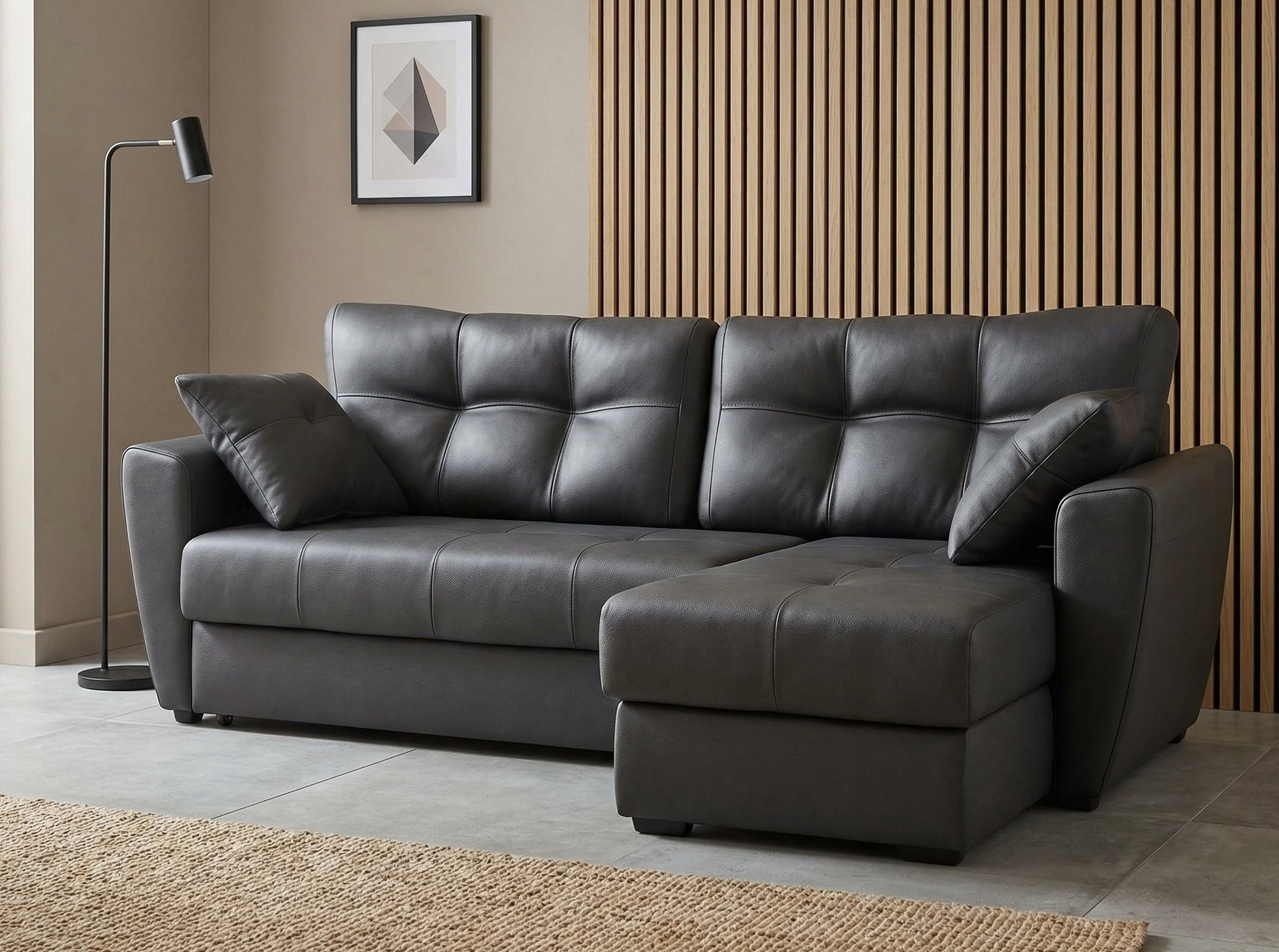 Угловой диван "Амстердам кожа черный" купить недорого в Нижнем НовгородеСтоимость категорий ткани: