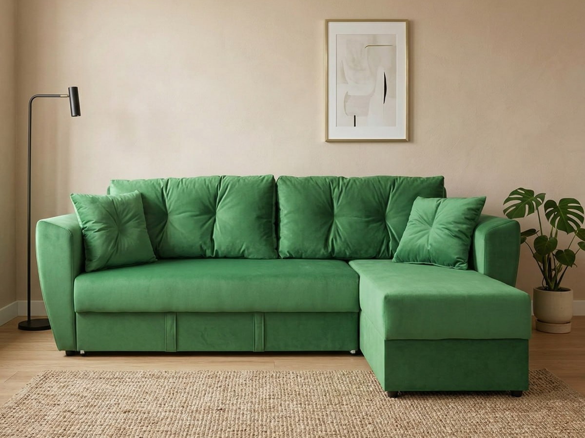 Угловой диван "Амстердам велюр зеленый" купить недорого в Нижнем НовгородеСтоимость категорий ткани: