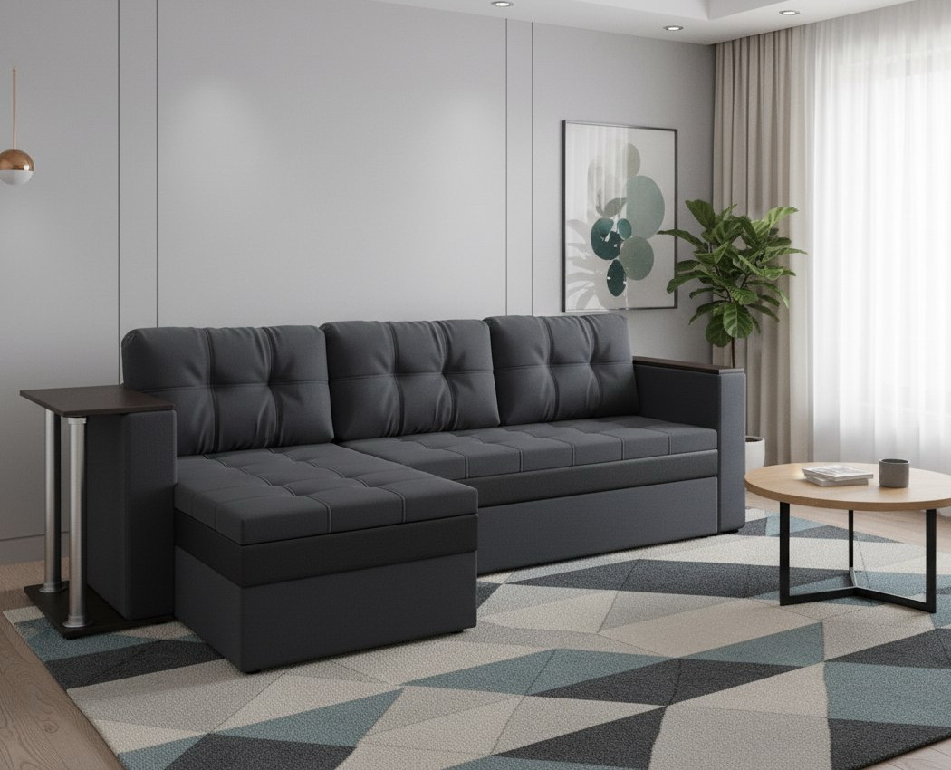 Угловой диван "Атланта со столиком" велюр зара грей 18