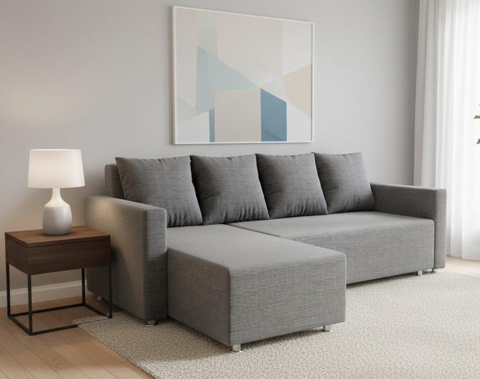 Угловой диван "Челси" рогожка дрим грей