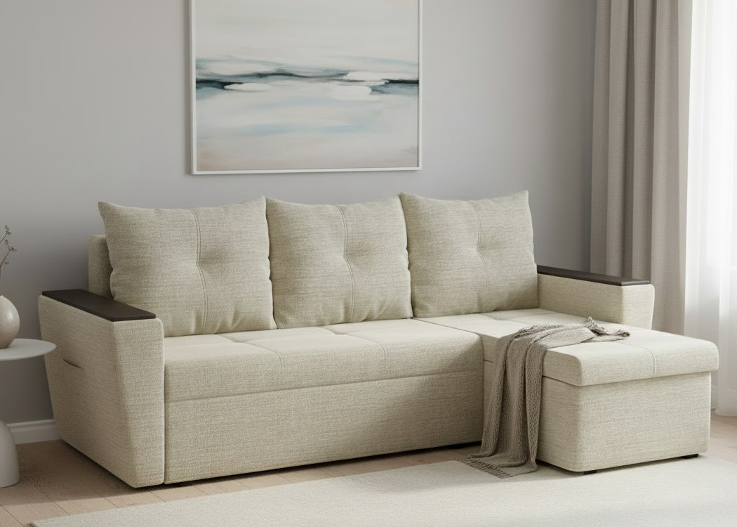 Угловой диван "Дубай Майами" рогожка дрим беж