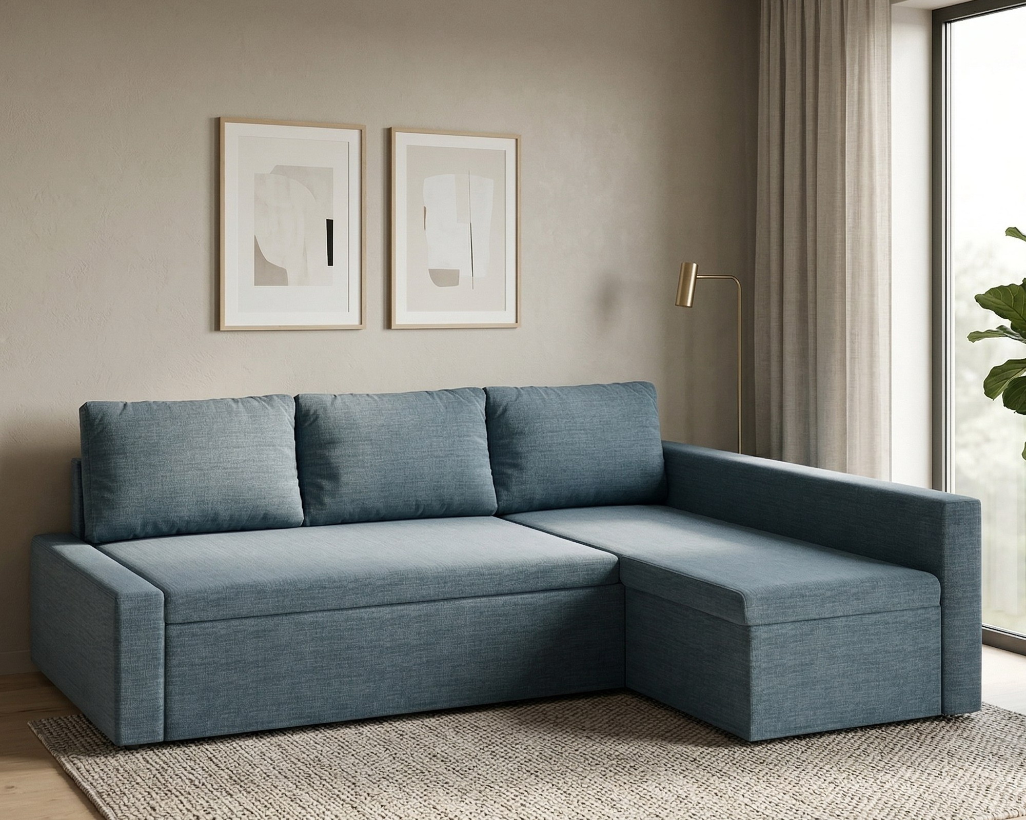 Угловой диван "Фрихетен" рогожка дрим блю